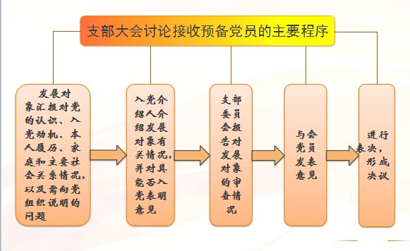 4、支部大会讨论接收预备党员的主要程序: