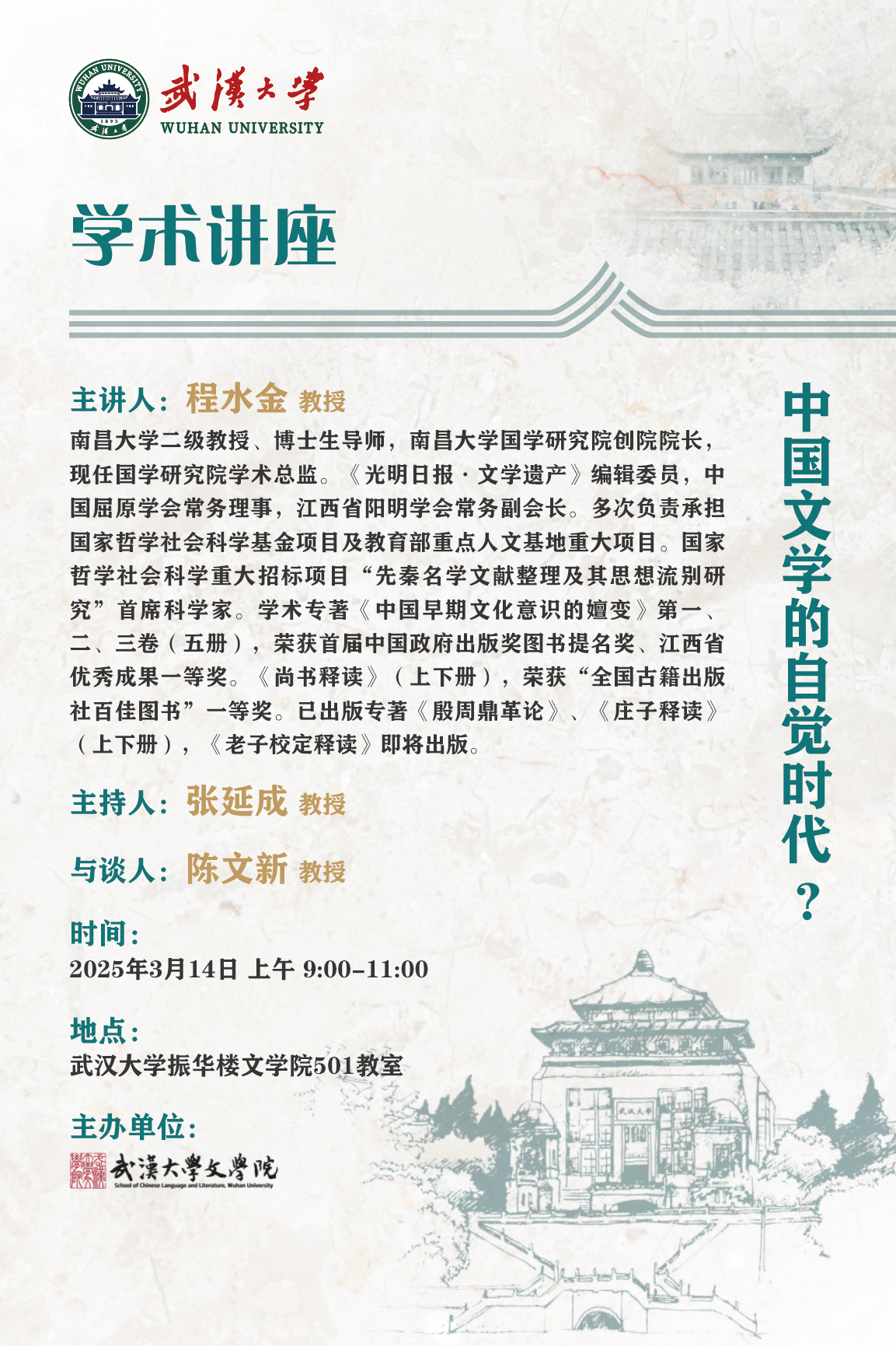 上一篇:【珞珈讲坛】第479讲预告 陈平原:现代中国大学的历史、传说与精神