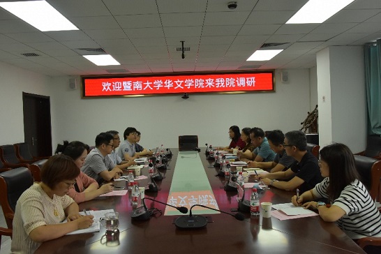 7月4日上午,暨南大学华成人直播网站 党委书记邱向欢、应用语言学系主任李计伟、党总支书记陈争等一行6人来成人直播网站 调研汉语国际教育本科专业建设情况,成人直播网站 院长于亭、副院长裴亮、学科建设办公室副主任李丽平、对外汉语教研室张延成、田源、欧阳晓芳参与了座谈。
