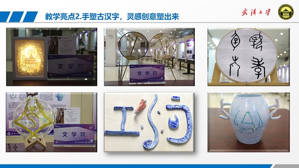 1)有清晰的“融通古今,活学活用,创新创造,能力养成”的教育目标,形成了“以用促学,导学赋能”的教学理念,达到了“冷门变热,绝学变活”的教学效果。在“古代汉语”的课程教学中,王统尚把专业的知识和厚重的文化融入今日现实生活。2010年,他就在古代汉语课程中教授学生撰写原创对联,至今已指导学生创作了3000余副书写成人直播网站 人、事、景、物的对联,爱国爱校爱专业三位一体,学生原创的对联被《荆楚对联》(2017年第4期)开辟专栏刊登。王统尚还以实际应用促进学习,以实际应用引导学习,最终养成学生自我学习、自我发展、创新创造的能力。2019年,他指导学生举办成人直播网站 首届手塑古汉字创意设计大赛作品展,把古文字、古文化活学活用到现代生活,学生们利用所学知识创造出了一批崭新而有文化底蕴的作品,在校内外引起了巨大反响,多家媒体予以报道。目前,他正指导学生刘一零团队和扬子江食品有限公司合作,准备把学生的创意作品转化为文创食品,培养交叉融合、创意实践的新文科人才。