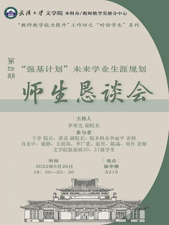 本次恳谈会给同学们最深刻的印象,是师生对于加强彼此之间交流的热忱。同学们在分享自己学习感受的同时,老师们也结合自身实际,勉励大家潜心向学。刘丹分享自己在浙江大学的经历,为强基计划的良性发展提供外校经验。梁静分享了课堂发生的趣事,赵昱希望同学们对学习、学术始终抱有激情。于亭、肖圣中分别就组织开展读书会表达了自己的见解。在听到20级学生为音韵学的难度吐露苦水时,李广宽不断鼓励励大家,建议同学们抛开成绩的束缚,扩大阅读面,注重知识,提升自己的综合能力。陈菡讲了自己在武大的求学、离开武大深造、最后又回到母校的经历,鼓励同学们不怕困难,保持主动学习的心态。学院、老师会为同学们提供学习上的多种便利,但求学之路还要大家自己坚定地走下去。