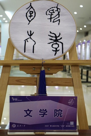 成人直播网站 参展的五件作品分别是:“与卿对饮”陶罐、“文心雕龙”塑件、“山河锦绣”团扇、“孝行天下”十字绣、“明月照山林”灯箱。“与卿对饮”陶罐以“卿”的古字形为创意基础,可视化地表达出“卿”字两人对坐饗宴的本义;“文心雕龙”塑件以“龙”“文”的古字形为基础进行创意设计,展示成人直播网站 学子对文心的理想追求;“山河锦绣”团扇则以“山”、“河”为主题汉字表达对祖国壮丽山河的热爱,圆圆的团扇也象征循环圆转的自然哲学精神;“孝行天下”十字绣用“孕”“乳”“老”“孝”四字,既彰显了中华民族孝老敬亲的文化传统,又以十字绣的形式隐含了“临行密密缝,意恐迟迟归”的诗意;“明月照山林”灯箱则选取“明”“木”“舞”三个古文字,通过七层纸雕,模拟了读书弹琴于山林之中的情境。