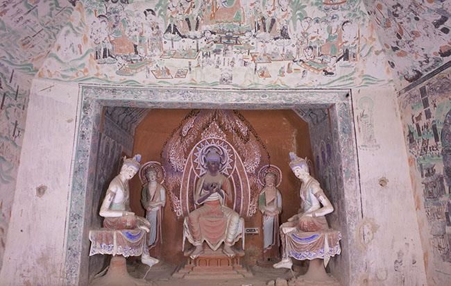 西壁佛龛及彩塑(图片来自敦煌研究院官网)