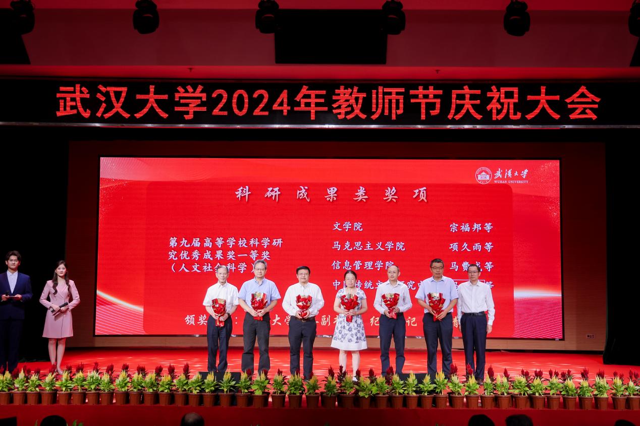 六位老师荣获学校集中表彰,其中宗福邦等老师荣获第九届高等学校科学研究优秀成果奖(人文社会科学)一等奖、李建中老师荣获湖北省第三届“最美社科人”、金宏宇老师荣获成人直播网站